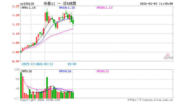 2月3日,截止午间收盘,科创创业人工智能ETF华泰柏瑞(159139)跌0.77%,报1.153元,成交额2713.93万元。科创创业人工智能ETF华泰柏瑞(159139)重仓股方面,新易盛截止午盘跌4.13%,中际旭创跌1.06%,澜起科技涨0.96%,寒武纪跌12.88%,金山办公涨0.71%,芯原股份涨3.15%,润泽科技涨0.69%,昆仑万维涨3.04%,协创数据跌2.40%,北京君正涨4.51%。